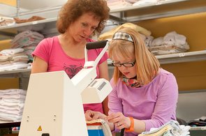 Im Bereich der Wäschekennzeichnung und -sortierung werden Namensschilder in Kleidungsstücke eingebügelt, das sogenannte Patchen. Die Wäsche wird nach Namen oder Symbolen sortiert und zusammengelegt.