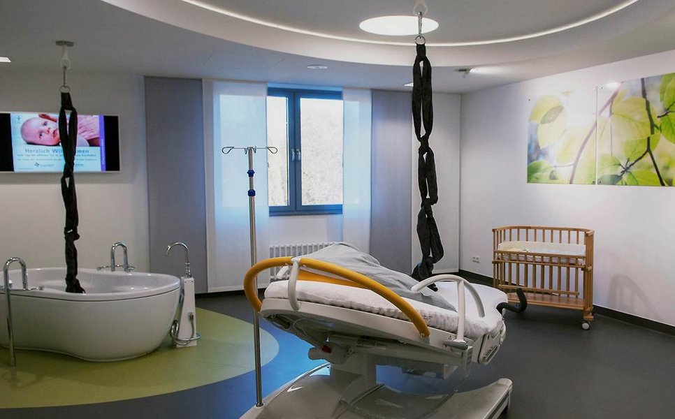 Unsere modernen und großzügigen Kreißsäle sind das Herzstück unserer Geburtshilfestation. Sie bieten alle Möglichkeiten für eine sanfte und sichere Geburt. Zu den modernen Entbindungsbetten stehen Ihnen unter anderem Gebärwanne, Gebärhocker, Pezziball und eine Sprossenwand zur Verfügung. Eine funkgesteuerte Herztonüberwachung Ihres Babys ermöglicht es Ihnen, sich frei im Kreißsaal zu bewegen. Schauen Sie sich auch unser Video an.