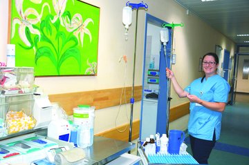 Ist es nicht einfacher, auf Stationen zu arbeiten, auf denen der Gemütszustand nicht ständig von einem Extrem ins andere umschlägt? „Ich würde nicht mehr woanders arbeiten wollen“, sagte Simone Ecker entschieden. Sie hat während ihrer Ausbildung zur Gesundheits- und Krankenpflegerin unterschiedliche Fachrichtungen kennengelernt und danach zunächst auf einer Station der Inneren Medizin gearbeitet. Nach deren Schließung wechselte sie auf die P1. „Natürlich ist das auch fordernd, aber man lernt, damit umzugehen. Vor einigen Jahren etwa habe eine alte Dame sie gefragt: „Wo ist meine Mama?“ „Ich wollte unbedingt ehrlich sein und habe gesagt, dass ihre Mama längst gestorben sei. Die Frau war erschüttert. Heute würde ich bei so einer Frage eher ausweichen und sagen, dass die Mama gerade nicht im Krankenhaus sein kann, aber dass ich mich jetzt um sie kümmere.“