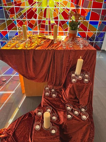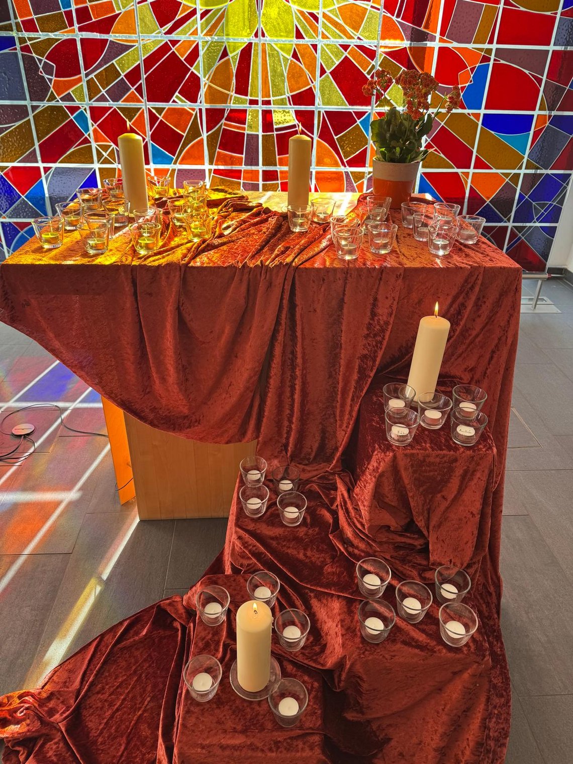 Unser Hospiz-Team gestaltet den Gedenkgottesdienst gemeinsam mit den Seelsorgenden. Die An- und Zugehörigen der Verstorbenen werden persönlich eingeladen. In einem sehr persönlichen und individuellen Gottesdienst lesen wir die Namen aller Menschen vor, die wir am Lebensende begleiten durften. Bei Kaffee und Kuchen haben wir die Möglichkeit, gemeinsame Erinnerungen auszutauschen und den Verstorbenen unsere Gedanken zu widmen.