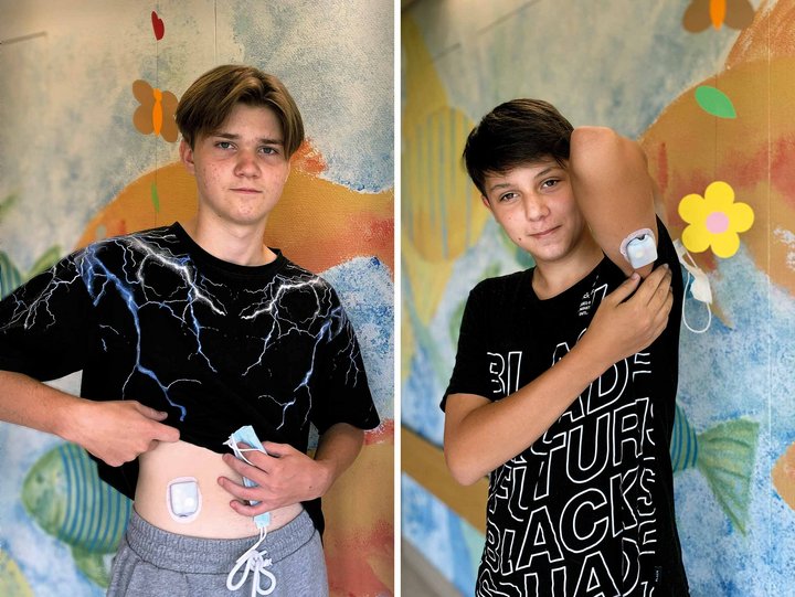 Den Prozess übernimmt jetzt die Pumpe, die das Insulin über eine kleine Nadel, die bei Luka im Bauch und bei Fabio im Oberarm steckt, in regelmäßigen Abständen in den Körper abgibt. Die beiden Jungen nutzen eine sogenannte Patchpumpe, bei der alle drei Tage ein Wechsel des Infusionssets nötig ist. Das Piepsen erinnert sie daran, die Pumpe auszutauschen.