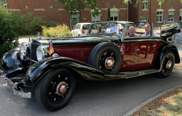 Der sechsjährige Samuel freut sich über die großen Fahrzeuge, die mit lautem Gebrumm am Eugenie Michels Hospiz eintreffen. „Darf ich da mal mitfahren?“, dieser Wunsch wurde dem kleinen Besucher des Oldtimer-Treffens erfüllt. Wie er bestaunten zahlreiche Fans die „alten Schlitten“ und folgten somit der Einladung des Fördervereins Eugenie Michels Hospiz. 28 Fahrzeuge rollten über das Gelände der Stiftung kreuznacher diakonie und glänzten in der Sonne um die Wette. Unterstützt durch die Vereine Oldtimer- und Schlepperfreunde Bretzenheim und Umgebung und Unimog- und Schlepperfreunde Rhein-Hessen-Nahe und viele private Besitzer verbreitete das Treffen große Freude. „Wann hat man schon mal die Gelegenheit, mit so einem tollen Auto zu fahren“, berichtet Heinz-Willi Kistner, Mitglied im Förderverein, Oldtimer-Fan und Opa von Samuel. Ob groß, ob klein – alle stiegen begeistert ein. Mit von der Partie war auch Palliativmediziner Dr. Heinz Peter Dilly, der mit seinem Mercedes, Baujahr 1935, das älteste Fahrzeug zur Schau stellte.