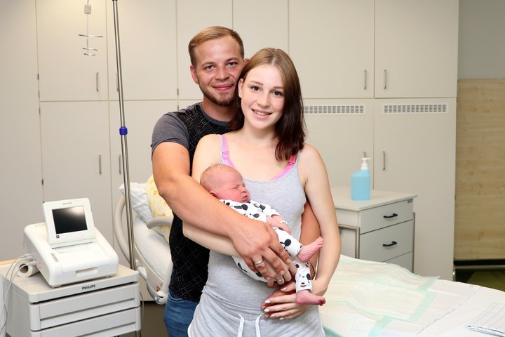 Das Geburtshilfe-Team der Hunsrück Klinik in Simmern freut sich über das 300. Baby im Jahr 2020: Ivan kam am Mittwoch um 7:41 Uhr auf die Welt. Der Junge misst 54 Zentimeter, wiegt 3.980 Gramm und ist putzmunter. Für die stolzen Eltern ist es das zweite Kind – auch Geschwisterchen Alexander kam schon in Simmern auf die Welt. „Wir fühlen uns hier wohl und gut aufgehoben“, sagt die frischgebackene Mutter Mariana Felinger.
