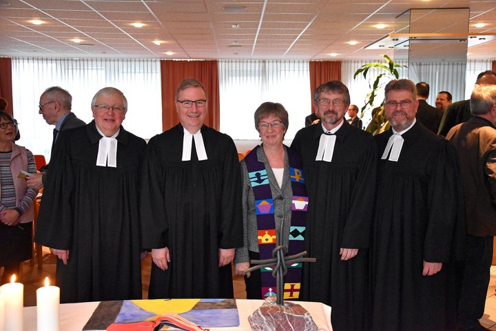 „Liebe Gemeinde, mein Herz ist voll“. Mit diesen Worten schließt Pfarrer Jörg Heidmann den feierlichen Gottesdienst in der Personalcafeteria des Diakonie Klinikum Neunkirchen und bedankt sich für das zahlreiche Kommen, die Gebete und Fürbitten. Superintendent Christian Weyer und Pfarrer Christian Schucht, Theologischer Vorstand der Stiftung kreuznacher diakonie, hatten ihn zuvor in den Dienst in der neugeschaffenen Verbandspfarrstelle eingeführt. Zu diesem Anlass kamen Besucher, Wegbegleiter und Kollegen in das Neunkircher Klinikum, in dem Pfarrer Heidmann unter anderen seit Dezember vergangenen Jahres tätig ist. In seiner Predigt griff er die Geschichte von Abraham und Sara auf, die drei Fremden eine Herberge baten. Diese Szene verglich er mit der Aufgabe und dem Handeln in einem Krankenhaus und anderen diakonischen Einrichtungen. Beherbergung erscheine simpel, sei aber anspruchsvoll: „Es geht um Momente, die mehr sein können, als man ihnen auf den ersten Blick ansieht.“