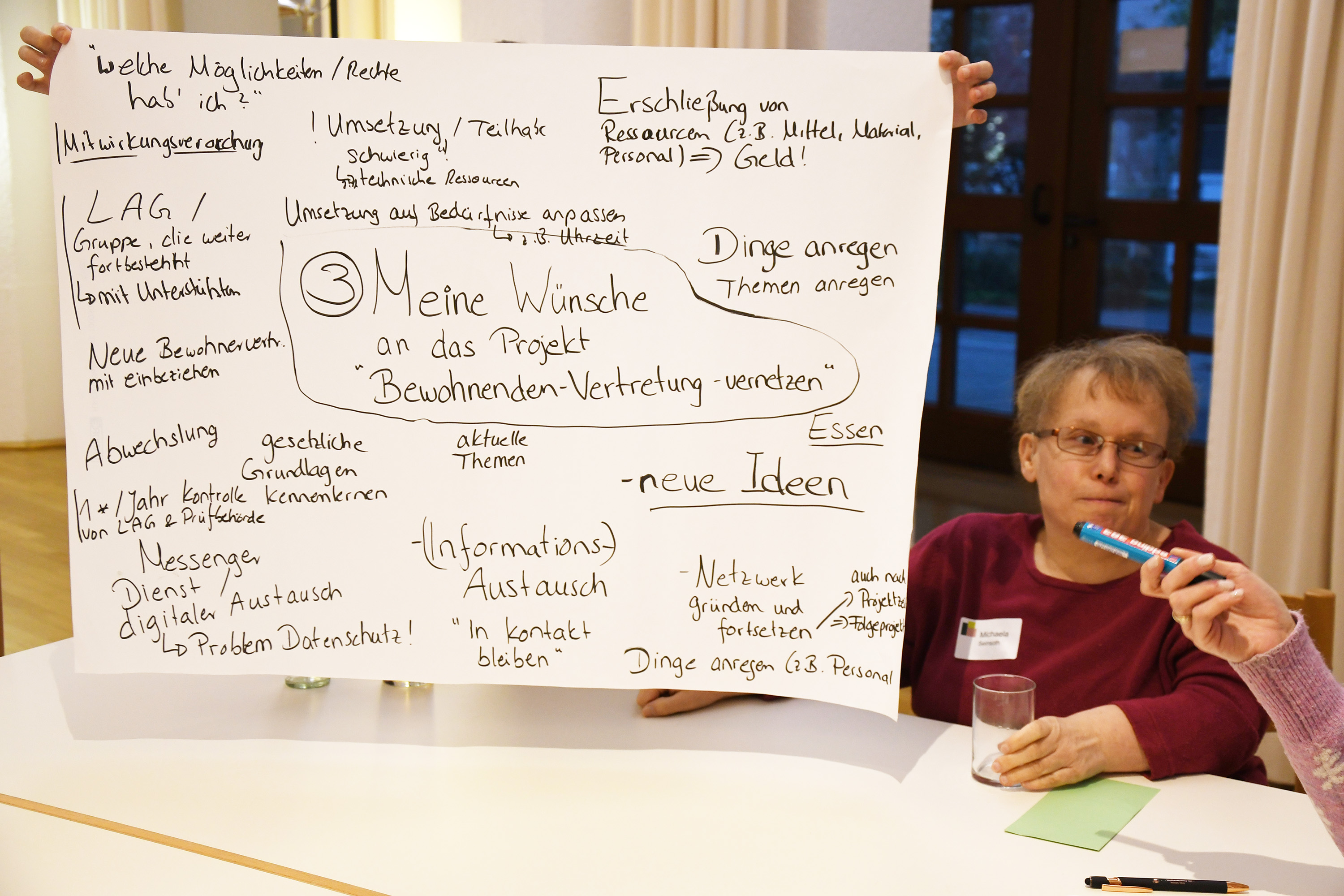 Die Frage „Was brauche ich, damit ich mitwirken kann?“ ist also ganz zentral auch bei der Gruppenarbeit. Die Vertreter des Landesamtes für Soziales, Jugend und Versorgung, die bei dem Treffen über die gesetzlichen Grundlagen, Rechte und Aufgaben der Bewohnerräte informiert haben, sehen auch, dass die Gremienarbeit der Bewohnerräte weitere Unterstützung benötigt.