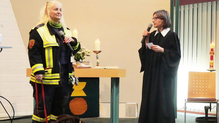Für die Arbeit dieser Lebensretter wird in diesem Jahr die Kollekte der Gottesdienste gesammelt. Heidi Walker vom Bereich „Geistliches Leben“ im Meisenheimer Zentrum: "Dass Menschen ihre Kraft dafür einsetzen, vermisste Menschen zu suchen und zu retten, das möchten wir unterstützen. Die Hundestaffel wird über die Nummer 112 alarmiert. Auch Gott hat eine Telefonnummer: 5015. Psalm 50, Vers 15. Dort steht: Rufe mich an in der Not, so will ich dich erretten. Der größte Menschensucher ist Gott selbst. Er möchte nicht, dass auch nur einer verloren geht. Wer sich von ihm finden lässt, ist gerettet. Im Hier und Jetzt und über den Tod hinaus für alle Zeit."