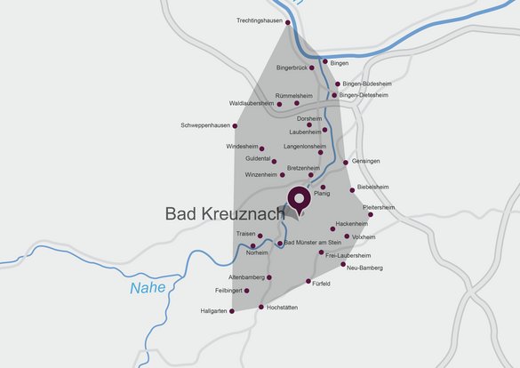 Die Mitarbeitenden der sechs Diakonie Sozialstationen sind in den Verbandsgemeinden Bad Kreuznach, Langenlonsheim, Rhein-Nahe, Kirchberg, Simmern, Kastellaun, Rheinböllen und Traben-Trarbach unterwegs. Wie weit die Einzugsgebiete darüber hinaus reichen, können Sie den Landkarten entnehmen. Mit ihrem umfangreichen Angebot an pflegerischer Unterstützung und den individuellen Hilfen im Haushalt kommt das Pflegeteam dem Auftrag nach, es Ihnen und Ihren Angehörigen zu ermöglichen, so lange irgend möglich daheim leben zu können.