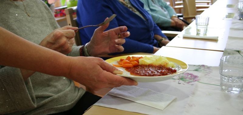 Die Gestaltung der Mahlzeiten ist eine ritualisierte und Struktur verleihende Tätigkeit, die täglich zelebriert wird. Wissend um die große Bedeutung der Ernährung, die hoch sinnliche Erfahrung des Essens und Trinkens selbst und die große Bedeutung biographischer Erfahrungen im Kontext der Mahlzeiten wenden wir uns diesem Bereich besonders zu. Das Mittagessen wird in Schöpfsystemen angeliefert. Da hier keine vorherige Portionierung für den Einzelnen stattgefunden hat, sondern vom Gemeinschaftlichen genommen wird, befördert dies die Kommunikation der Bewohnerinnen und Bewohner untereinander sowie das Gemeinschaftserleben. Alle können frei über die Menge und auch über die Wahl der einzelnen Komponenten der Mahlzeit entscheiden. Auch ist ein „Probieren von allem, was da ist“ möglich. Das verschafft jedem Einzelnen mehr positive Selbstwahrnehmungen und ein viel individuelleres Entscheiden als bei einer fertig portionierten Mahlzeit. Die Zwischenmahlzeiten sowie alle Hauptmahlzeiten bergen durch die Einbindung der Seniorinnen und Senioren ein aktivierendes Potential. Über das Lesen alter und neuer Koch- und Backbücher, das Anschauen der Fotos, das ins Gespräch kommen über biographisch bedeutsame Gerichte, das gemeinsame Erarbeiten kleinerer Beilagen zu den Hauptmahlzeiten, das Backen von Kuchen und Plätzchen, das Pflücken von Kräutern am Hochbeet, das Apfel- und Kartoffelschälen, das Nippen von Wein, Eierlikör oder anderem wird das Essen und Trinken zu einer sinnlichen und kommunikativen Erfahrung für alle. Diejenigen, die ihre Mahlzeit im Zimmer einnehmen (wollen), werden bei Bedarf von den Pflege- und Betreuungskräften betreut.